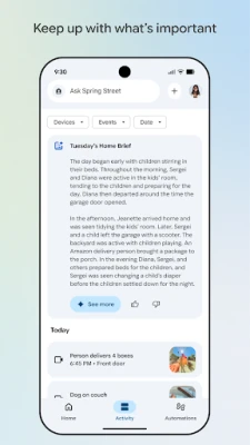 Không chỉ dừng lại ở quản lý, Google Home còn là người canh giữ đáng tin cậy. Tính năng xem trực tiếp và nhật ký sự kiện của camera an ninh giúp bạn dễ dàng xem lại những gì đã xảy ra, đảm bảo an toàn cho ngôi nhà bạn 24/7. Hơn thế nữa, trải nghiệm điều khiển ngôi nhà thông minh được nâng lên một tầm cao mới với Gemini for Home. Chỉ cần ra lệnh bằng giọng nói, bạn có thể yêu cầu các thiết bị thực hiện tác vụ mong muốn một cách thông minh và linh hoạt, biến ngôi nhà trở thành một không gian tương tác sống động và tiện nghi. *Xin lưu ý, một số sản phẩm và tính năng có thể không khả dụng tại một số khu vực cụ thể và yêu cầu thiết bị tương thích để sử dụng tối ưu.