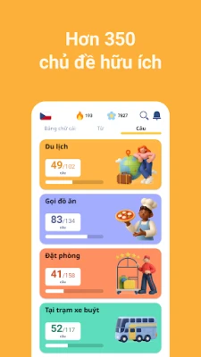 FunEasyLearn giúp bạn học tiếng Séc hiệu quả từ 61 ngôn ngữ bản địa của mình. Ứng dụng cung cấp trải nghiệm học miễn phí và có thể sử dụng offline, giúp bạn thành thạo tiếng Séc mọi lúc, mọi nơi.