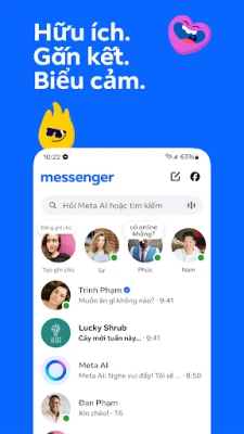 Messenger giúp bạn kết nối và giữ liên lạc với bạn bè, gia đình. Khám phá sở thích, xây dựng cộng đồng và thể hiện cá tính độc đáo của bạn. Tất cả gói gọn trong ứng dụng nhắn tin miễn phí, tiện lợi này.